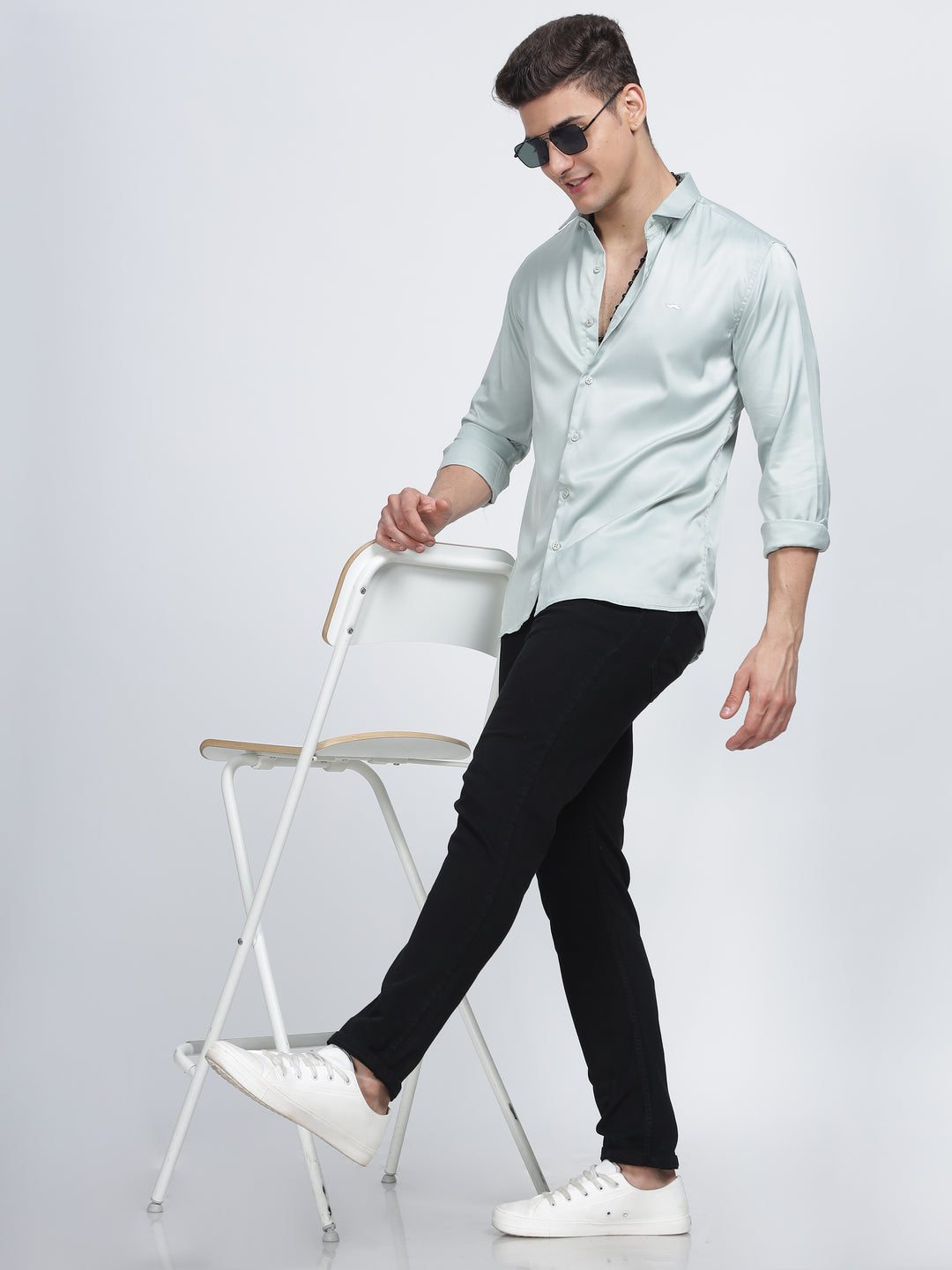 PLAIN PEACH SATIN STRETCH SHIRT MINT GREEN
