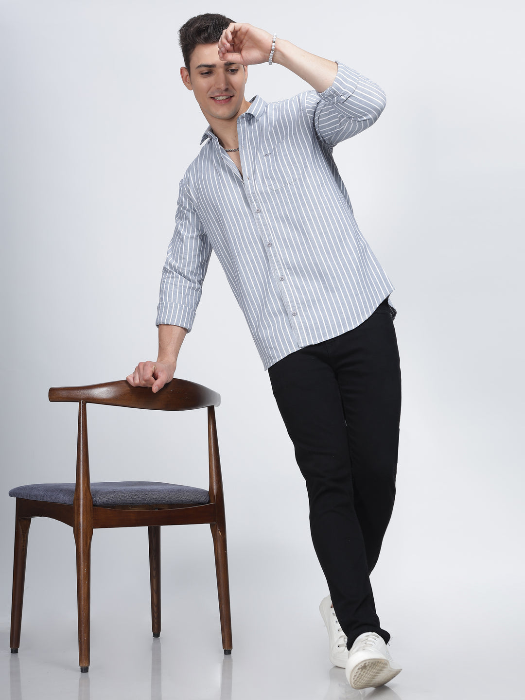 SINGLE LINE STRIPE GHOST WHITE SHIRT