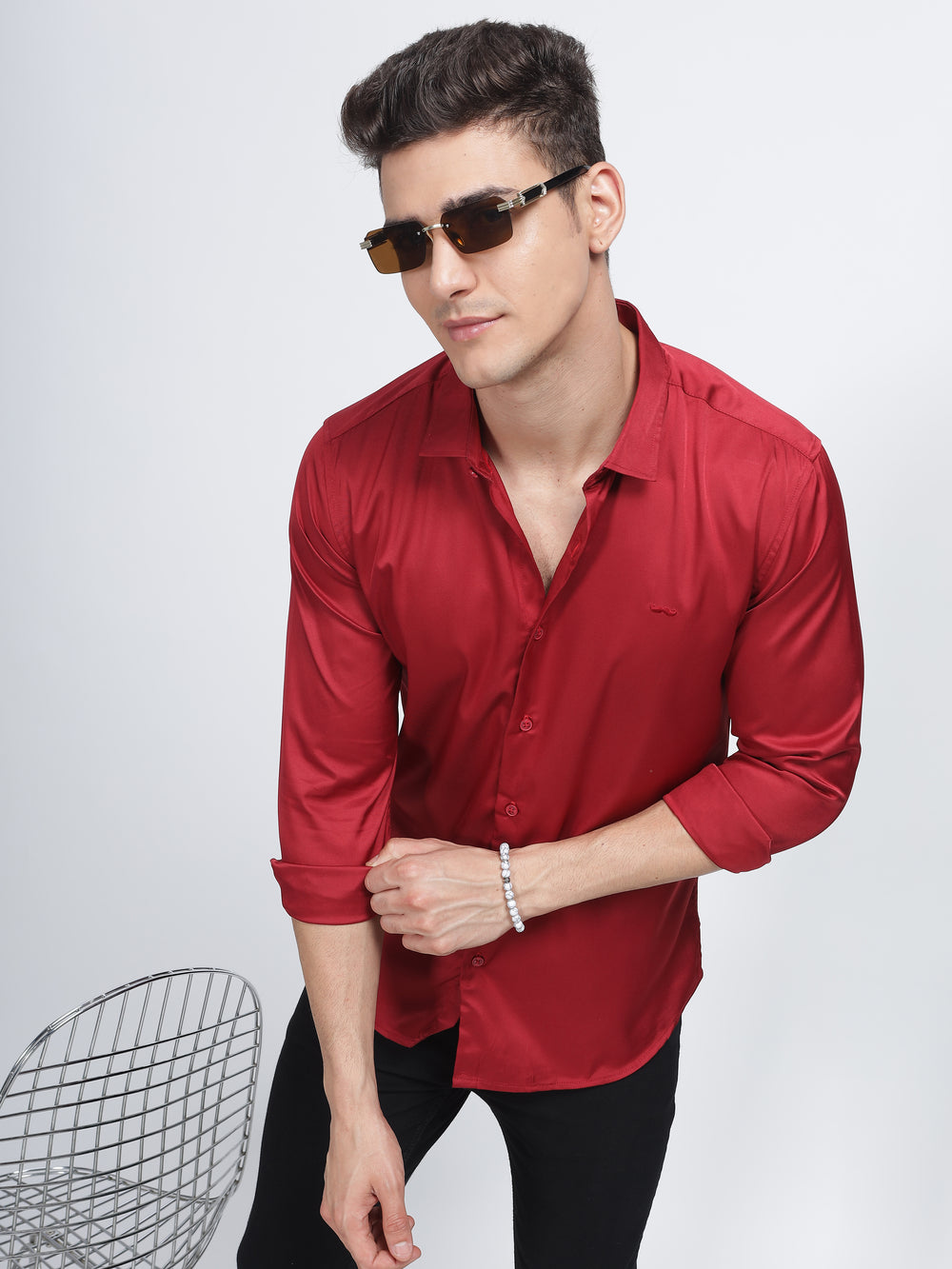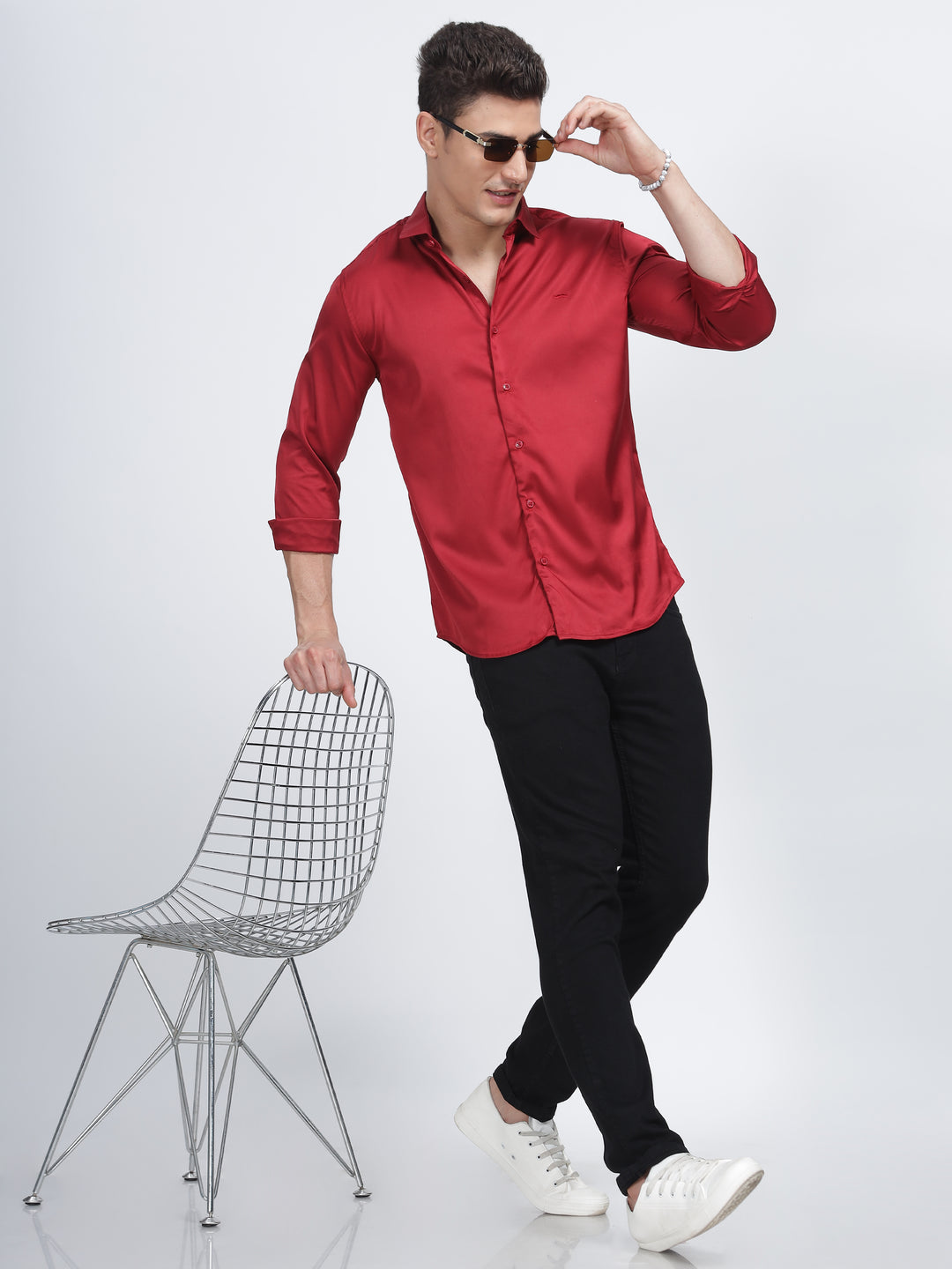 PLAIN PEACH SATIN STRETCH SHIRT RUBY RED