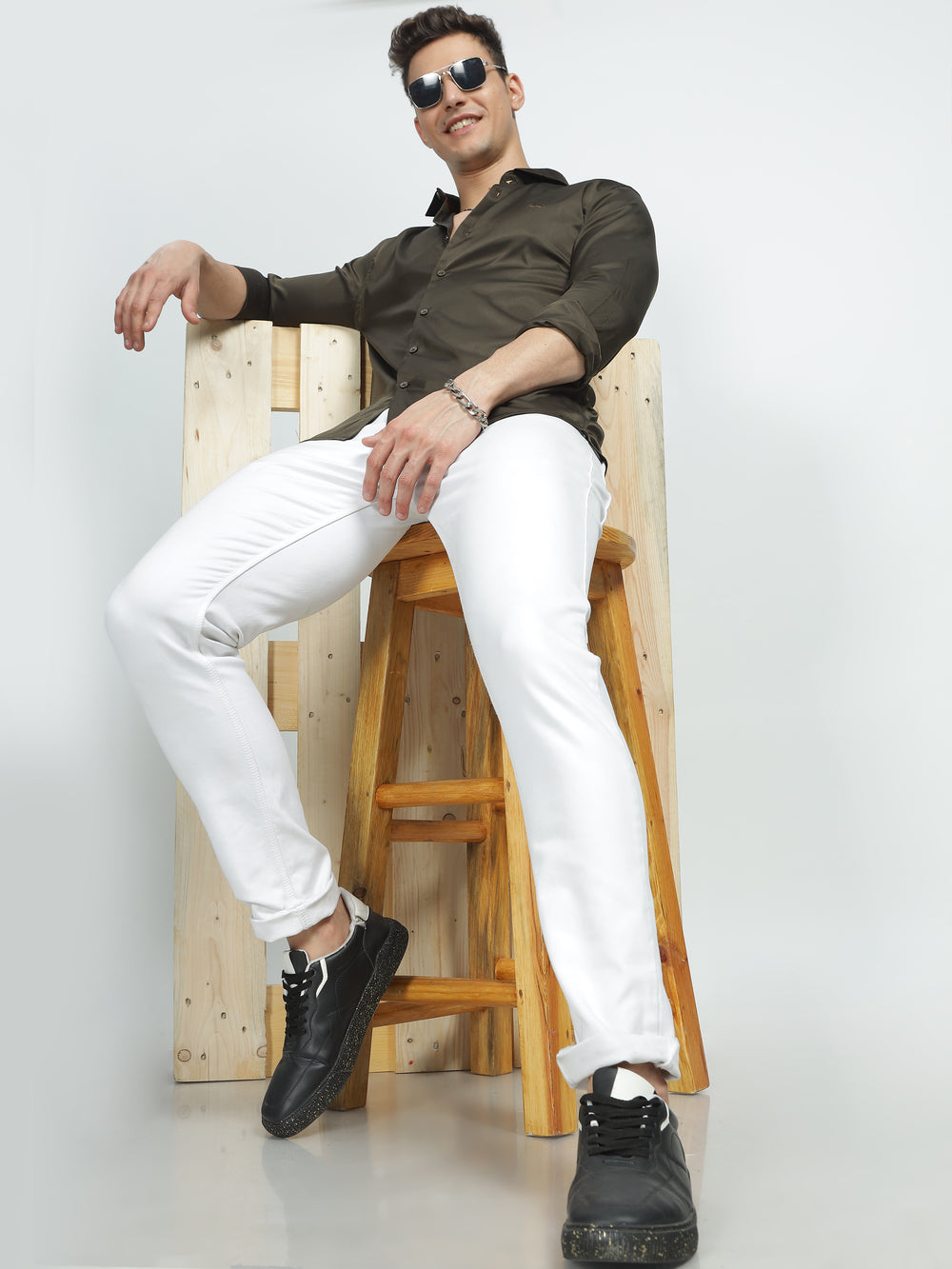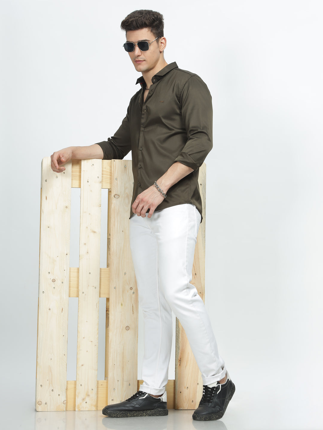 PLAIN PEACH SATIN STRETCH SHIRT STRONG OLIVE GREEN