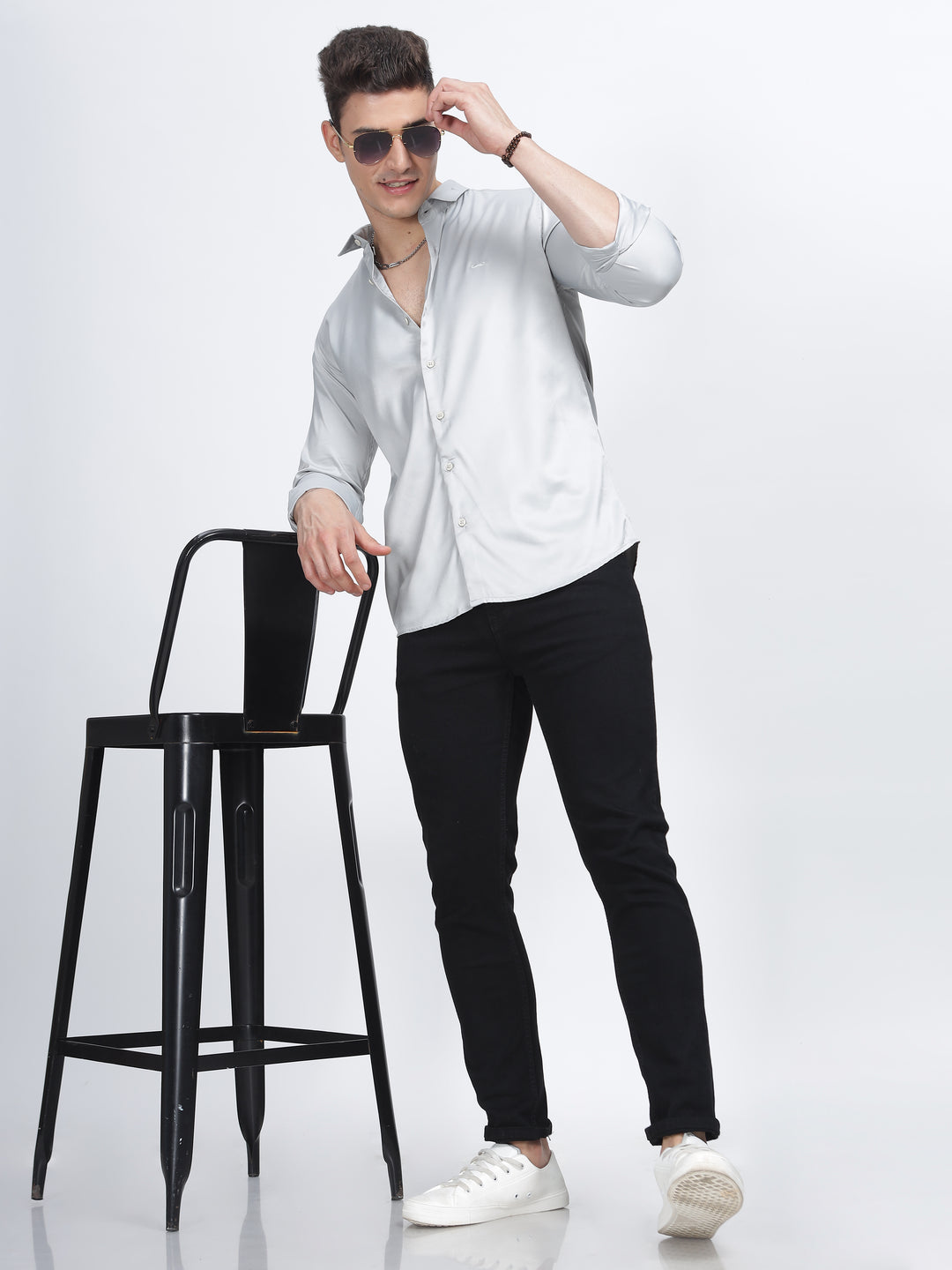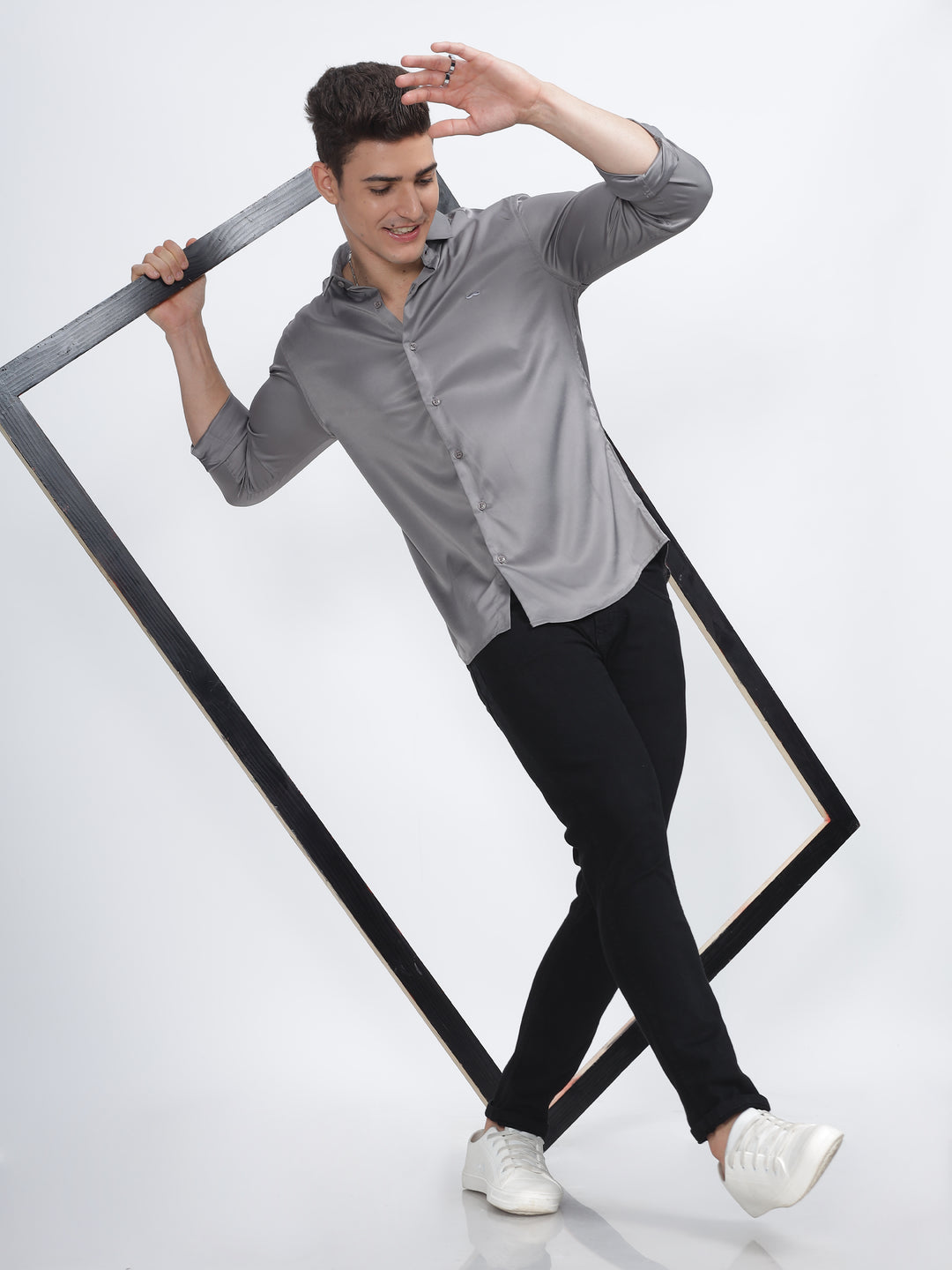 PLAIN PEACH SATIN STRETCH SHIRT SHARK GRAY