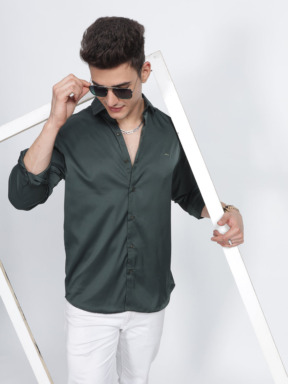 PLAIN PEACH SATIN STRETCH SHIRT HUNTER GREEN